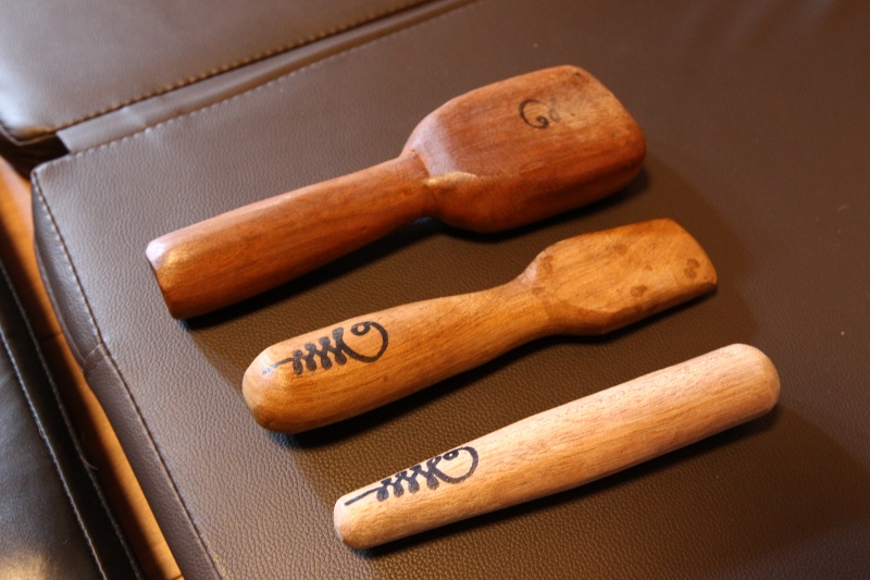 本日のレッスン体験では、まず関谷先生から施術をしていただきました。指先や手のひらを使った丁寧なマッサージに加え、驚いたのは「トークセン」という伝統技法です。木槌と杭を使い、トントンとリズミカルに叩きながら振動を伝えていくのですが、これが驚くほど心地よかったです。指だけでは届かない体の深くまで振動が浸透していく感覚は、マッサージ初体験の私にとって感動でした。