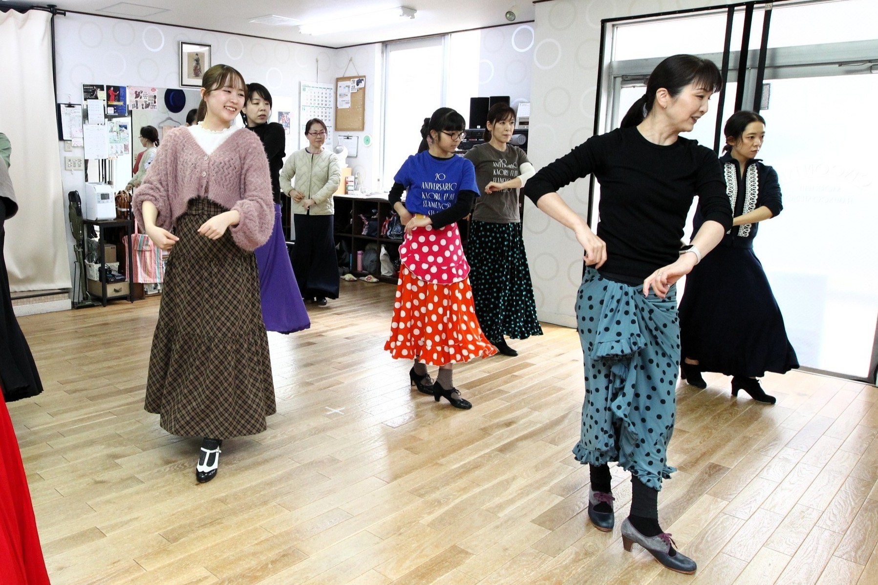 愛宕橋駅から徒歩5分くらい、平日の午前中に加え、平日夜間や土日にもレッスンができる続けやすいフラメンコ教室です。初心者の方・全年齢の方・男女ともにウェルカム!